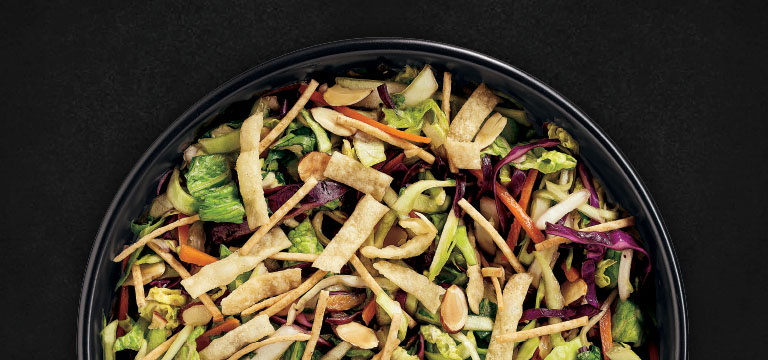 Shredded romaine, green cabbage, Napa cabbage, carrots with almonds, chow mein noodles, wonton strips and a mandarin vinaigrette