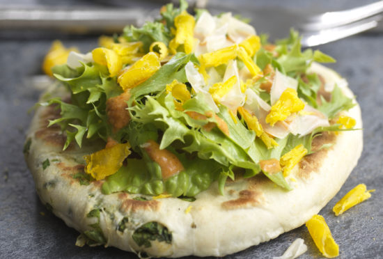 RomaBlend® Spiced Flatbread with Kimchi Dressing & Cured Egg Yolk
