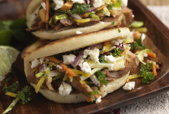 Veggie Power Blend Arepas with Pork Carnitas & Fiery Aji Amarillo Sauce