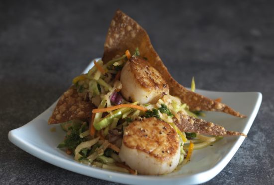 Seared Scallops Over Quick Veggie Power Blend™ Kimchi