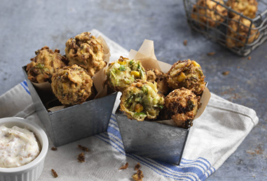 Shaved Brussels Sprouts Fritters with Bacon Aioli