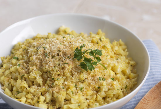 Cauliflower “Rice” Lemon “Cous Cous” with Parmesan Panko Crumbs