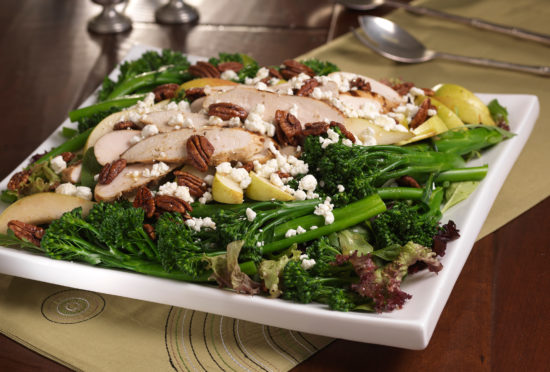 Grilled Chicken BROCCOLINI® baby broccoli Salad with Goat Cheese and Pecans